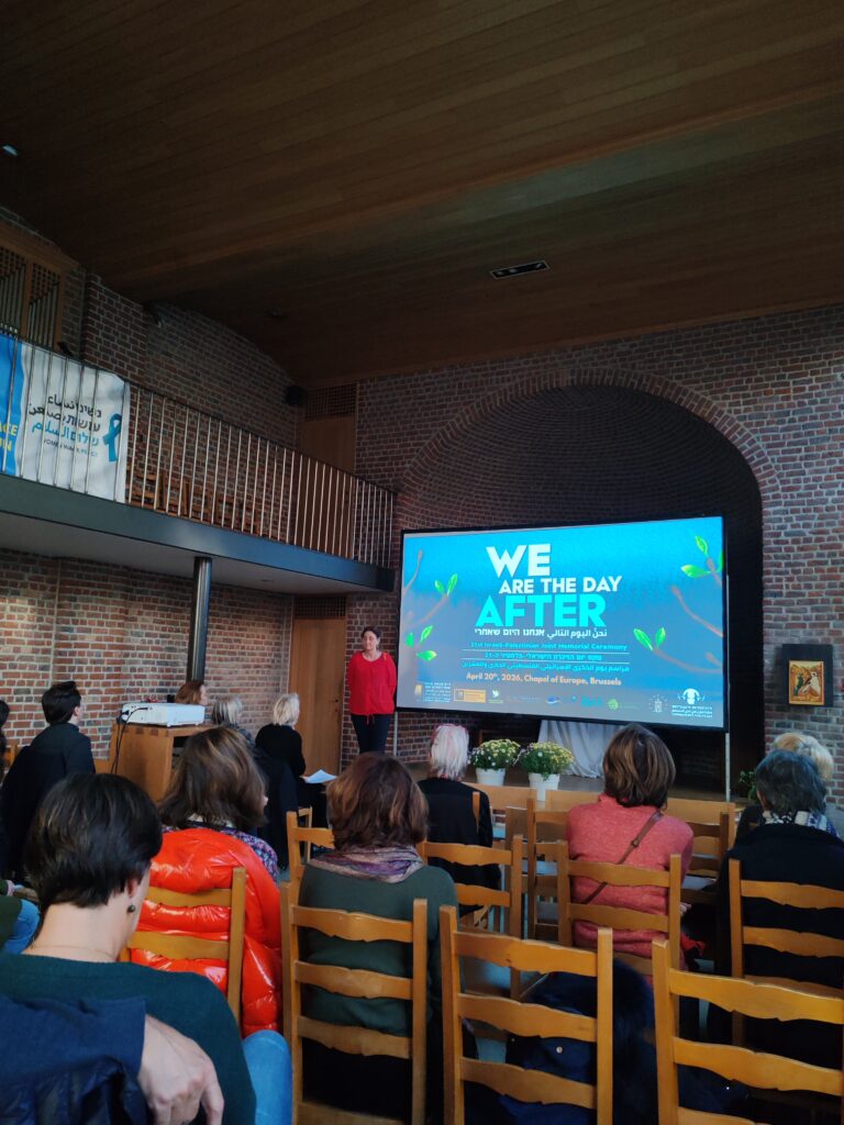 Vor dem Hintergrund unermesslichen Leidens haben sich einander Palästinenser*innen und Israelis in einer Gedenkfeier am 20. April 2026 die Hände für eine gemeinsame Zukunft gereicht. Gleichzeitig versammelten sich vergangene Woche an vielen Orten weltweit Menschen in Solidarität mit ihrem Leiden, aber auch mit ihrer festen Entschlossenheit, an einer gemeinsamen Zukunft zu arbeiten. So wurden unter anderem auch am Afro-Asiatischen Institut in Salzburg und in der Chapel for Europe in Brüssel Live-Übertragungen der Zeremonie organisiert.